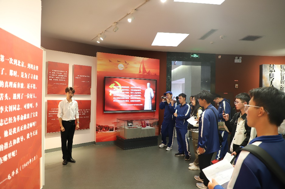 接下来,跟随着解说员的讲解,同学们认真参观学习,进一步了解李大钊同志生平事迹,作为新文化运动的旗手、马克思主义的传播者、中国共产党的创始人之一,每一个阶段都展现出李大钊坚定的信仰和无畏的精神。