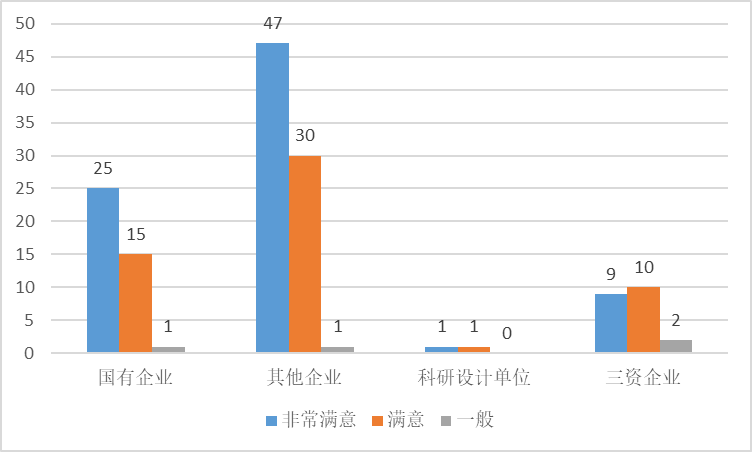 本次参与问卷调查的25家与机械相关的用人单位均为制造型企业,其对我院应届毕业生的总体满意度如下图26所示,基本都在满意以上。