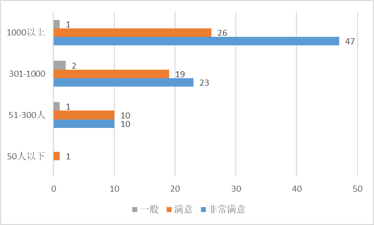 图28 不同规模用人单位(按在职员工计)对本校应届毕业生的满意