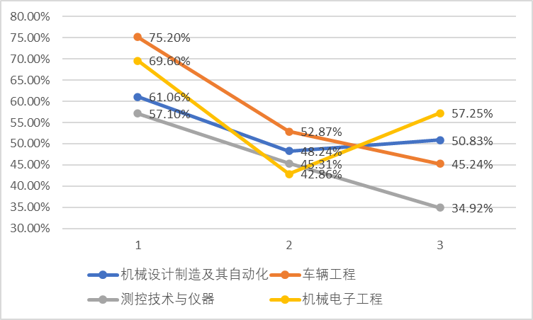 图31 爱游戏ayx体育各专业就业率总体变化趋势