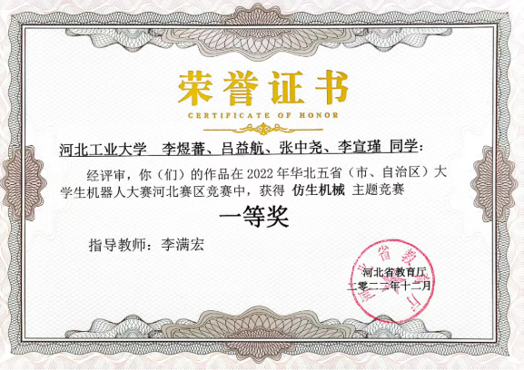 竞赛战场屡创佳绩,彰显机械科创实力。以赛促学,科技竞赛项目获国奖237项,其中郭士杰教授团队指导的“感”同身受项目在第十三届“挑战杯”中国大学生创业计划竞赛中荣获金奖;兴冀车队在中国大学生方程式汽车大赛系列赛事获全国一等奖8项;连续承办中国高校智能机器人创意大赛省赛,获国奖25项,优秀组织单位。