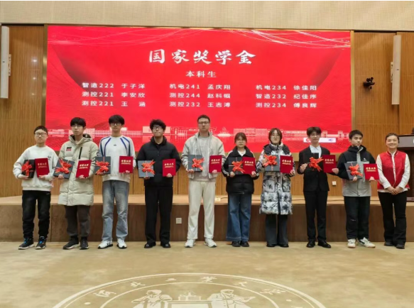 河北省三好学生、校十佳大学生、测控222班刘柏羽同学分享了其在学业与体育赛事中实现双向突破的成长历程,展现了新时代青年的拼搏风采;测控221班张舜同学以学年绩点提升0.92的逆袭经历,讲述了突破自我、坚持奋斗的蜕变故事,在场学生深受鼓舞。