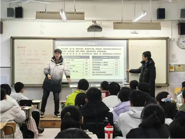 宣讲现场,队员们以 “母校学子” 和 “高校新生” 的双重身份,从学科实力、师资力量、校园文化、生活服务等多个维度,全方位解读爱游戏ayx体育的独特魅力。针对不同年级学弟学妹的需求,队员们量身定制分享内容:为高三学子重点梳理录取分数线、志愿填报技巧、专业选择逻辑;为高二学子科普学科竞赛、综合素质评价等升学路径;为高一学子分享高中阶段学习规划、心态调节方法。一张张精心制作的 PPT、一个个真实鲜活的故事,让学弟学妹们对理想高校有了清晰的认知,也对未来的学习生活充满了期待。