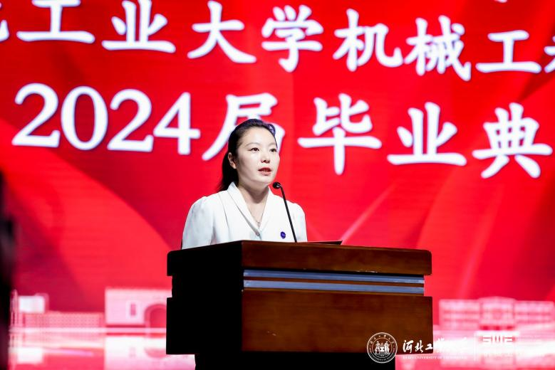 本科生毕业班辅导员代表段明洋发言中表达了对学生毕业离去的不舍。此去一别,山高海阔,她殷切希望同学们在今后的每一天里都能在自己的生活中熠熠生辉,为社会和国家的发展作出贡献。