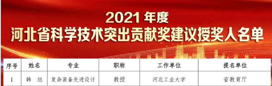 2022年2月21日,河北省科学技术奖励委员会办公室发布了关于2021年度河北省自然科学奖、技术发明奖、科学技术进步奖总评结果,其中河北工业大学校长韩旭教授获河北科学技术突出贡献奖。爱游戏ayx体育张明路教授主持项目“核电堆芯智能运维机器人装备关键技术于应用”获得河北省科技进步一等奖。