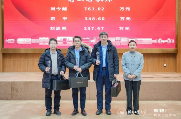 表彰环节,学院对科研经费贡献突出的团队与个人,以及在教育教学领域取得优异成绩的教师进行表彰,学院领导为获奖代表颁发奖牌、奖杯以及纪念品。