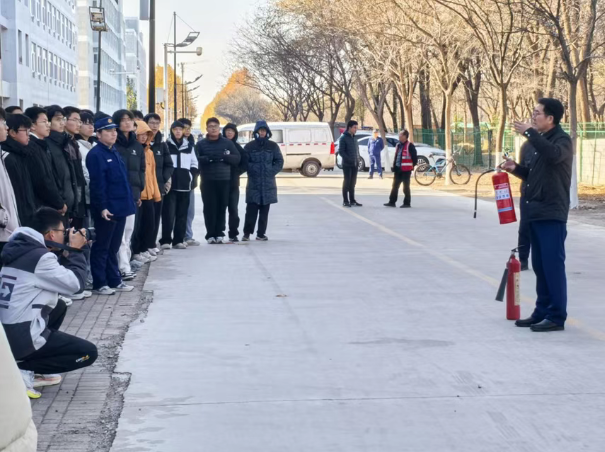 集结后,吕卓军老师结合典型案例,剖析火灾危害,普及防火灭火常识与消防设施使用方法。随后,学生以十人小组为单位,在消防人员辅助下,按规范流程使用灭火器扑灭人造火焰,完成灭火实战演练。