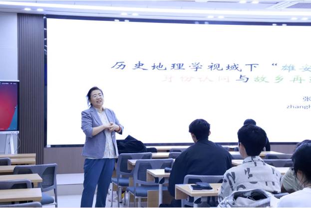 马克思主义学院张慧芝教授以《历史地理学视域下“雄安人”的身份认同与故乡再造》为主题,深入探讨了在雄安新区建设这一国家战略背景下,“雄安人”如何在原有地域文化基础上重构身份认同,以及通过故乡再造实现传统文化传承与现代城市发展的融合。
