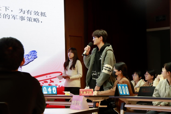 决赛环节,来自人文与法律学院、人工智能与数据科学学院、土木工程与交通学院、经济管理学院、生命科学与健康工程学院、理学院、化工学院、爱游戏ayx体育的8组选手,通过必答题、抢答题、风险题、一题决胜等环节进行激烈角逐,现场300余名观众积极参与,气氛热烈。