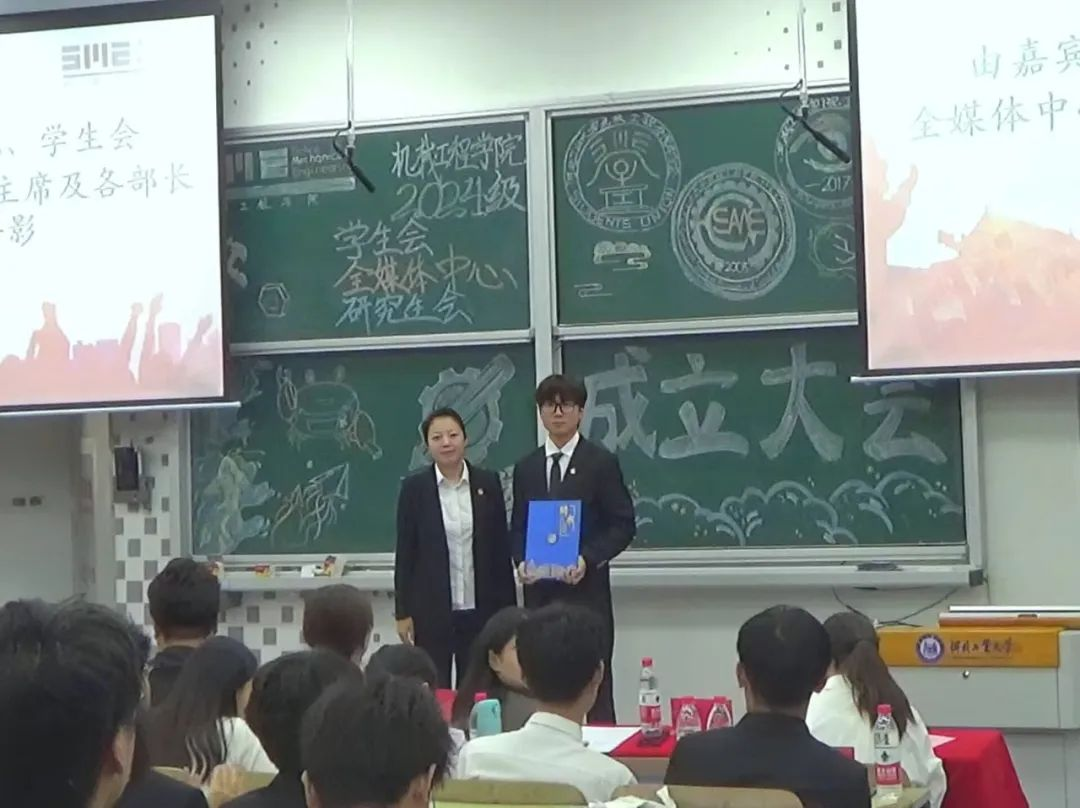 接下来,与会嘉宾为2024级学生会、全媒体中心以及研究生会的主席和各部门部长颁发了聘书。