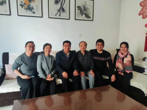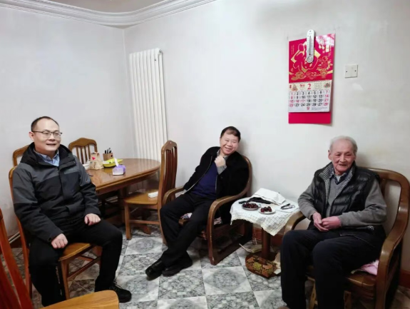 走访过程中,慰问组每到一户,都与老教师们围坐相谈,聆听过往故事,共话学院发展。院领导详细询问老教师的身体状况和生活情况,并围绕过去一年学院在学科建设新突破、科研平台升级、青年教师培养等方面取得的进展进行深入交流。
