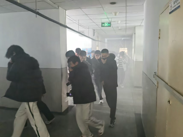 此次演练以无毒无害人造烟雾模拟火灾现场,警报响起后,同学们迅速捂住口鼻、弯腰低姿,沿指定路线有序撤离,仅1分30秒内全部在安全地带集结完毕。